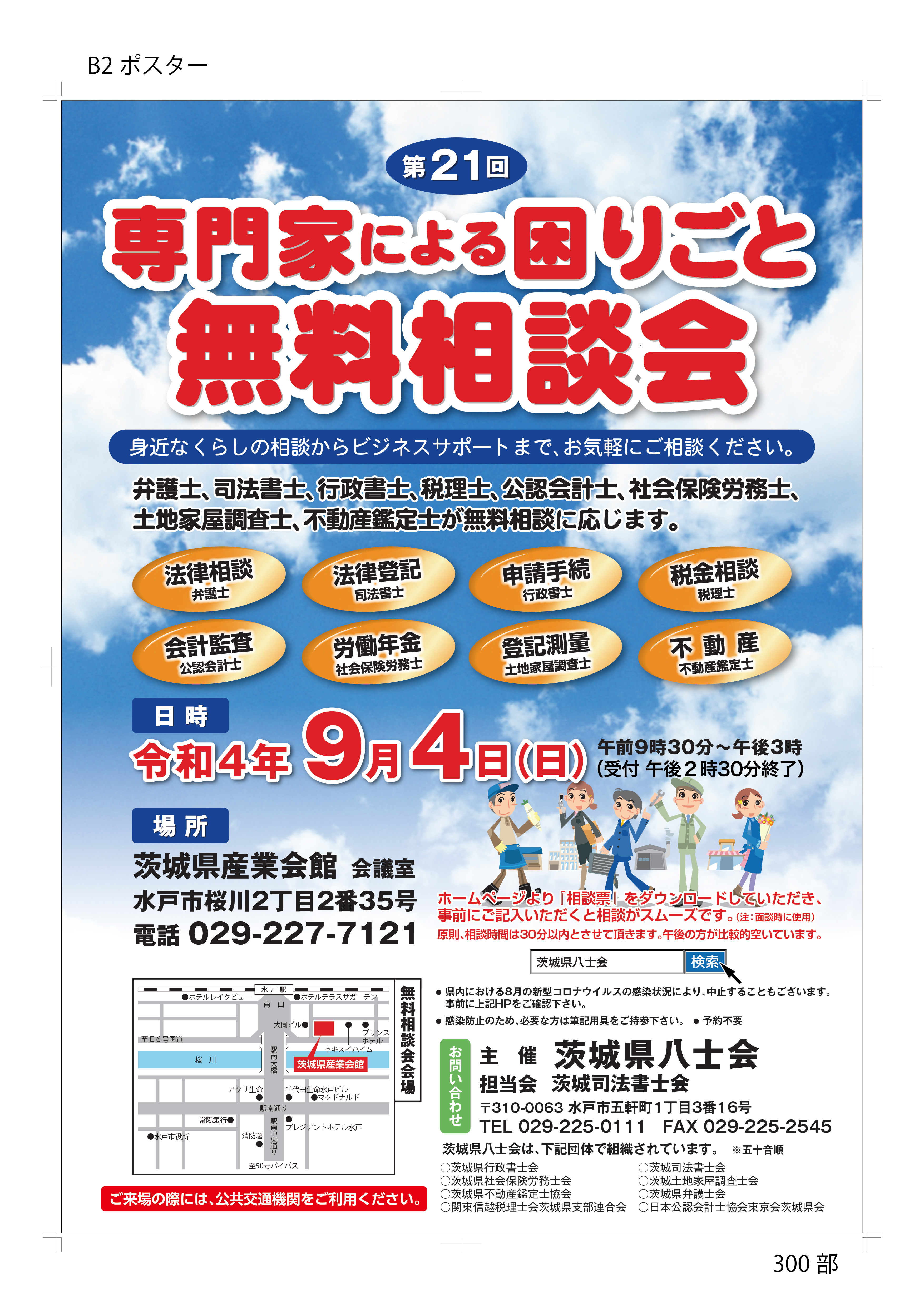 9月4日(日)開催の無料相談会に茨城県社会保険労務士会も参加します。